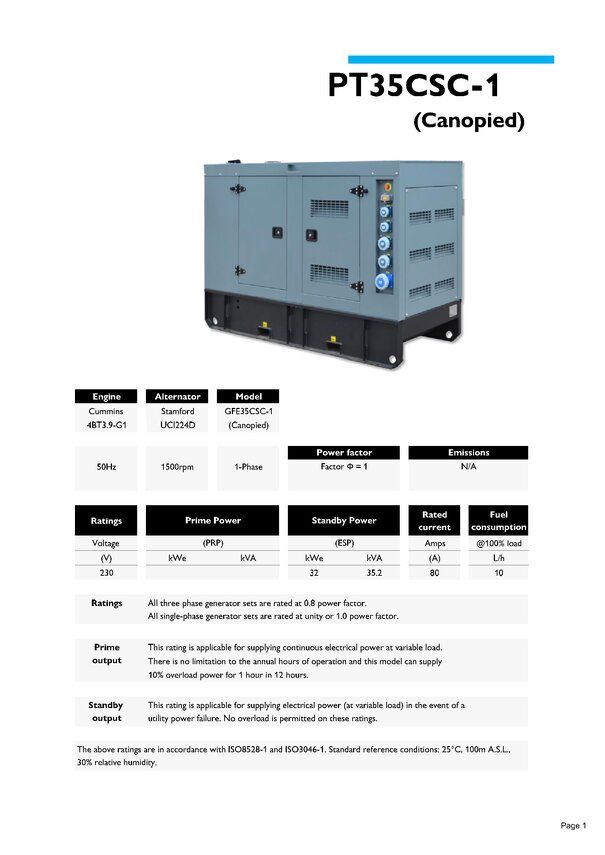 Kva prime power/standby 32/35.2
