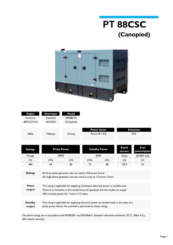 | Kva prime / standby | 80/88 |