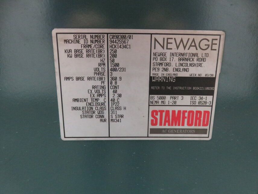 | Kva | 250 |